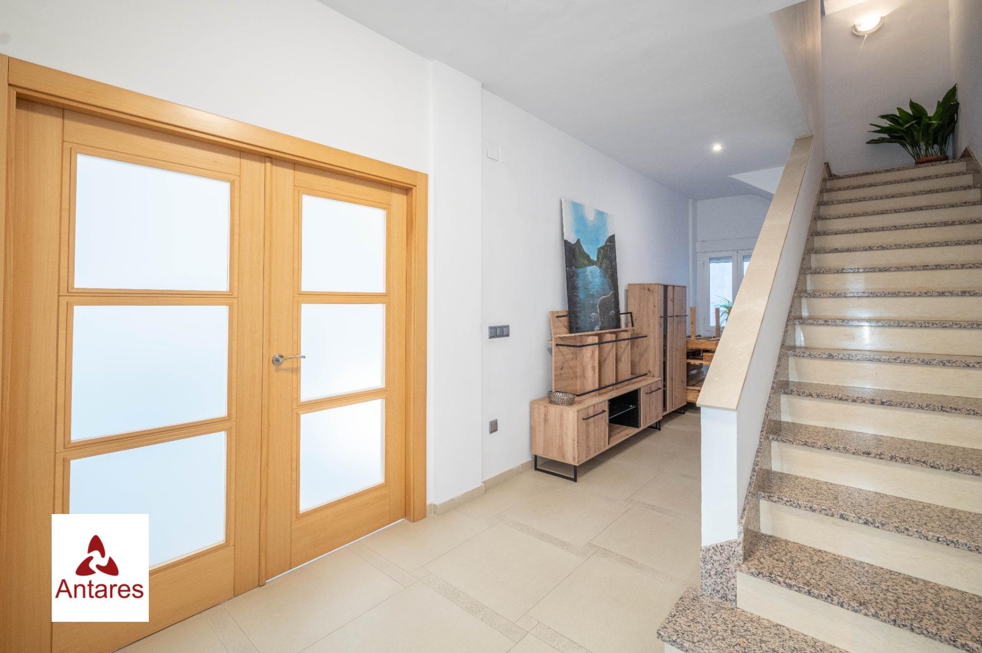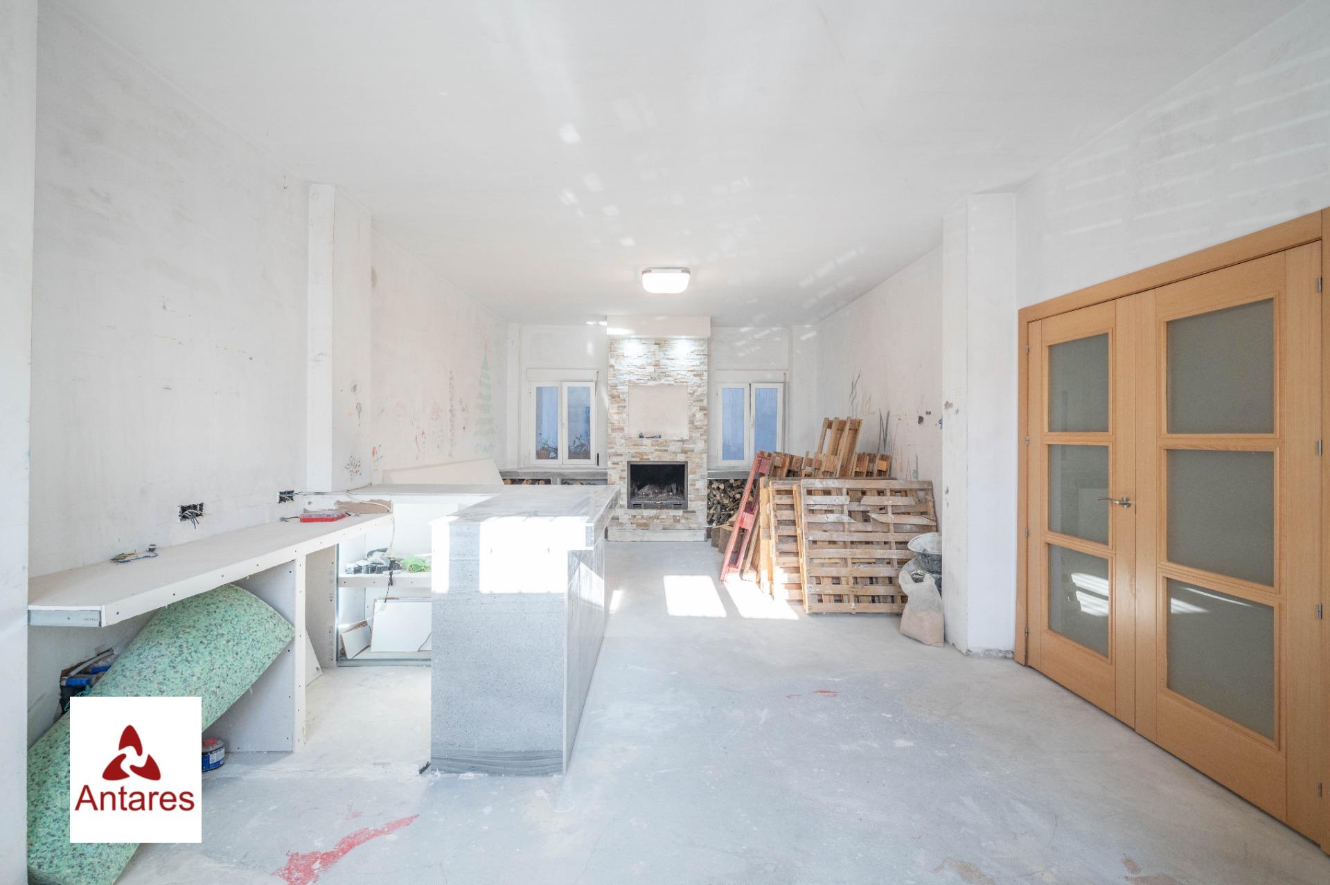 Planta baja con zona de garaje equipada con puerta motorizada, amplio salón con chimenea y barra de obra ideal para reuniones familiares, habitación trastero, cuarto de baño con instalación terminada, únicamente a falta de alicatar y montar sanitarios y amplio patio trasero con habitación acristalada.